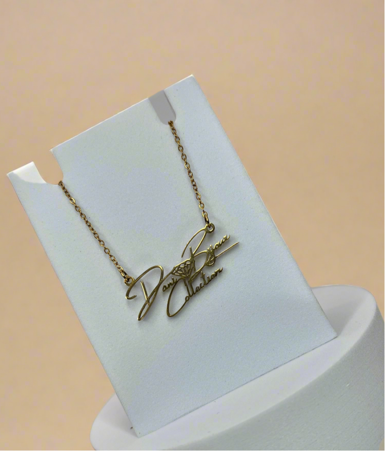 The Signature Dorée necklace is the ultimate expression of timeless elegance and personal style. Crafted with precision and radiating a soft golden glow, this piece features the distinguished Dani Bijoux logo as a central design element. Perfect for layering or wearing alone, it’s a modern staple for those who embrace luxury with confidence and grace. Whether you’re attending golden hour soirées or elevating everyday looks, this signature piece from the Golden Hour Collection embodies the spirit of empowerment and individuality.